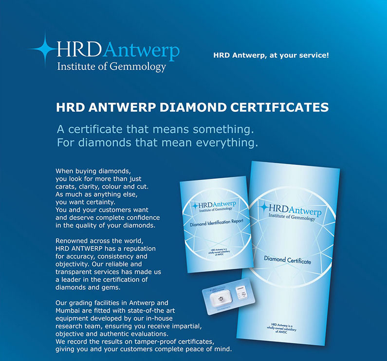 Các viên Kim Cương từ 4.5li màu DEF trở lên của KITA đều được cấp chứng thư của HRD.